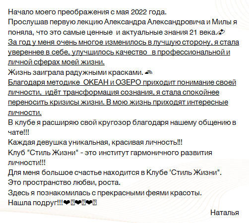 2-3 онлайн-лекции в месяц на тему женской красоты, стиля, этикета, мышления, дома и здоровья (+ коллекция лекций в записи на темы цвета и моды, этикета и декора дома, мышления и нетворкинга и другие)